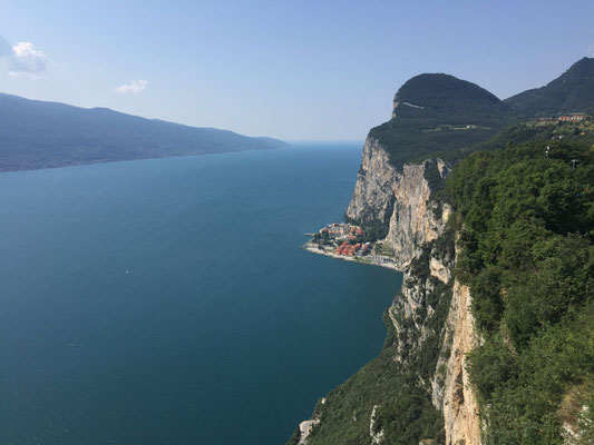 …begann von Arco von in Richtung Limone zum Hotel Paradiso mit den Schauderterassen um den wunderbaren Ausblick zu genießen …danach besuchten wir die Kapelle….wo wir nach einem kleinem Gebet o.ä. in Richtung Fähre nach Toscolano führen…setzten mit der Fähre nach Torri über und sind ins nicht touristisch frequentierte Restaurant La Val zu Mittagessen eingekehrt…dort konnten wir im Schatten das Mittagessen und die gute Stimmung geniessen…danach gings über Malcesine entlang am See zurück nach Arco und Trient bis Molina wo wir im 4 Sterne Hotel Ancora übernachteten…
